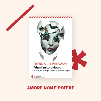 Il pensiero occidentale è da sempre caratterizzato da un pensiero binario asimmetrico, di cui le opposizioni uomo/donna e mente/corpo rappresentano solo due tra gli assi concettuali più importanti. Si tratta di opposizioni tra termini mai tra loro equivalenti, dualismi da sempre funzionali alle pratiche del dominio: sulle donne, sulla gente di colore, sulla natura, sui lavoratori, sugli animali. La nascita del cyborg, da metafora fantascientifica a condizione umana, però cambia questo stato di cose. Perché il cyborg è al contempo uomo e macchina, individuo non sessuato situato oltre le categorie di genere. La pretesa naturalità dell’uomo è quindi solo una costruzione culturale, poiché oggi tutti noi siamo in qualche modo dei cyborg. L’uso di protesi, lenti a contatto, by-pass è solo un esempio di come la scienza sia compenetrata nel quotidiano e abbia trasformato il corpo. Se il corpo può venire trasformato e gestito, esso non è più sede di una presunta naturalità contrapposta all’artificialità e non possiamo più pensare all’uomo in termini esclusivamente biologici. Il cyborg non è quindi né macchina né uomo, né maschio né femmina, situato oltre i confini delle categorie che normalmente utilizziamo per interpretare il mondo.