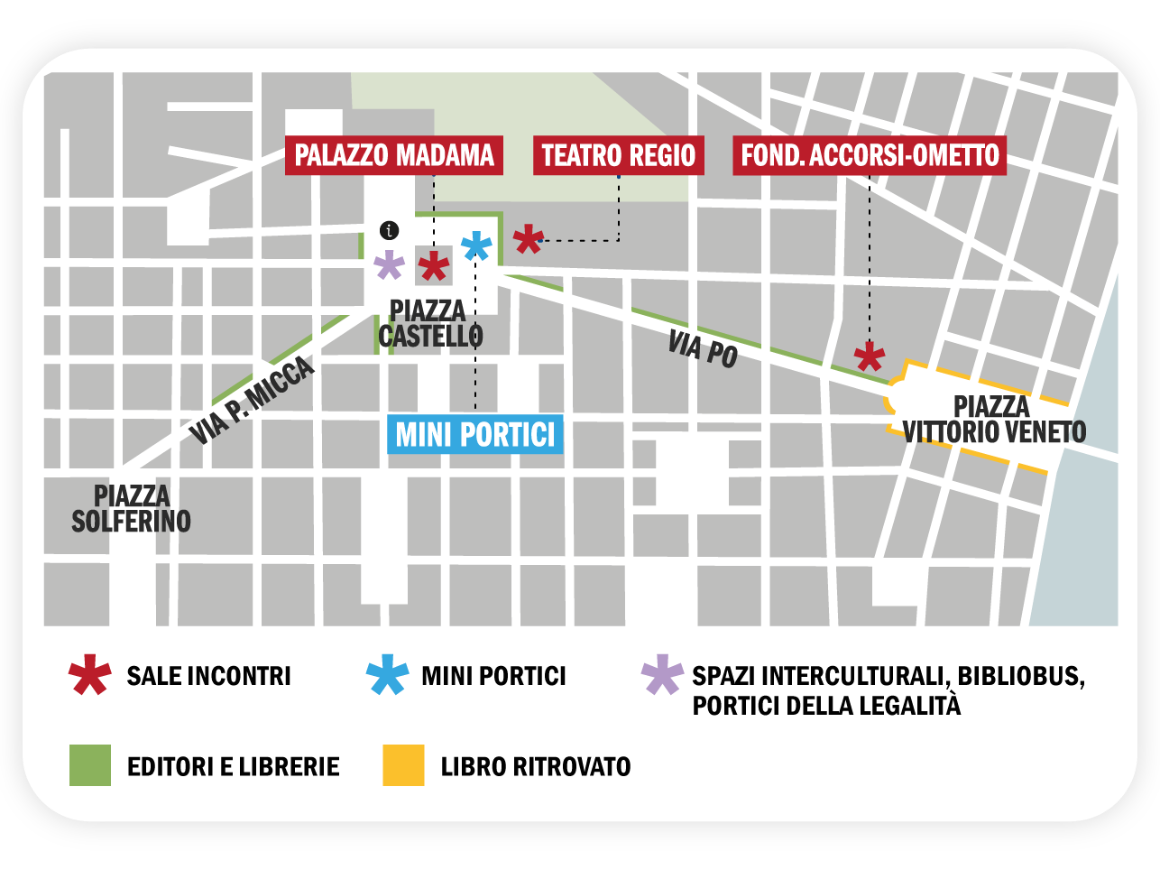Sono stati presenti anche i Portici della Legalità: in collaborazione con le Giornate della Legalità, uno spazio in Piazza Castello dedicato alla discussione su legge e vita comune. Si potrà partecipare a panel tematici come: